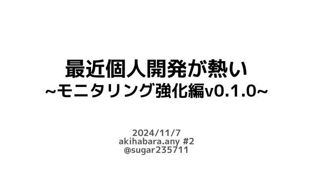 最近個人開発が熱い ~モニタリング強化編v0.1.0~ 2024/11/7 akihabara.any #2 @sugar235711