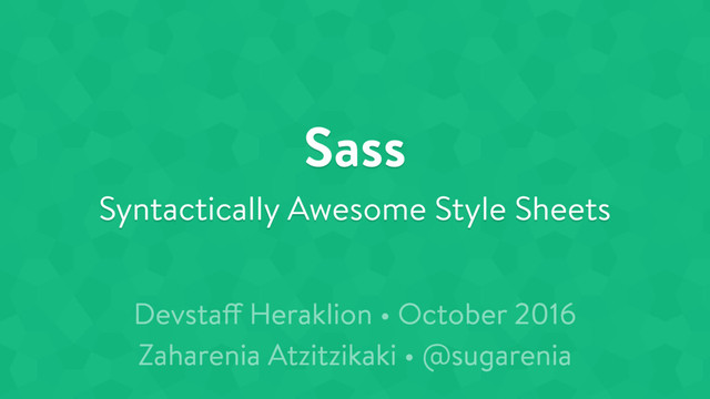 Curious about preprocessors? Meet Sass, the most mature, stable, and powerful professional grade CSS extension language in the world. I'll go through the basics and show you how Sass can give you CSS superpowers, both for small and large scale projects.