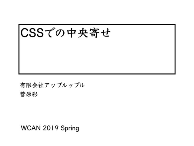 CSSでの中央寄せ 有限会社アップルップル 菅原彩 WCAN 2019 Spring
