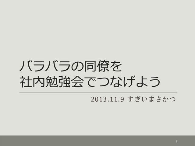 バラバラの同僚を 社内勉強会でつなげよう 2013.11.9 すぎいまさかつ 1