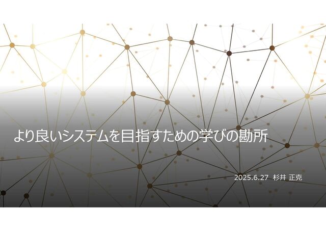 より良いシステムを目指すための学びの勘所 2025.6.27 杉井 正克