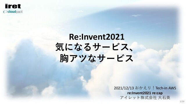 Re:Invent2021 気になるサービス、 胸アツなサービス 2021/12/13 おかえり!Tech-in AWS re:Invent2021 re:cap アイレット株式会社 ⼤⽯英