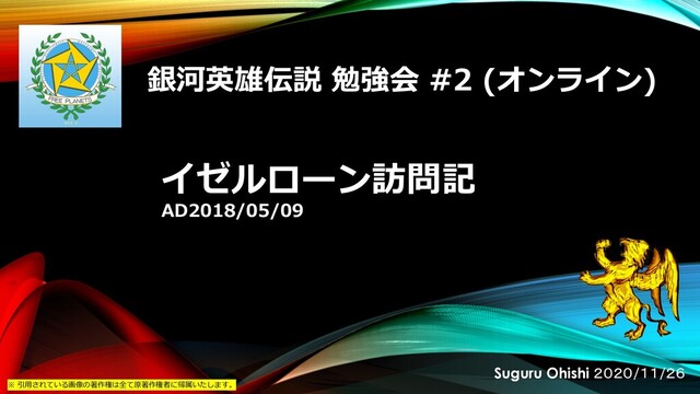 イゼルローン訪問記 AD2018/05/09 Suguru Ohishi 2020/11/26 銀河英雄伝説 勉強会 #2 (オンライン) ※