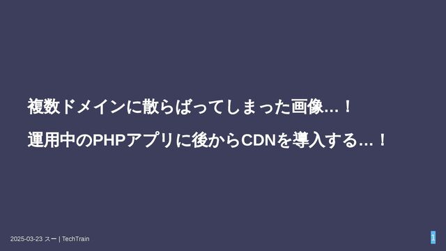 運用中のPHPアプリに後からCDN(CloudFront)を導入する際、**複数のS3ドメインに画像が分散している**ことが課題となります。CDNは地理的に分散されたサーバーでコンテンツをユーザー近くに配信し、**表示速度を向上させる**ための技術であり、TTL(キャッシュ有効期限)の理解が重要です。