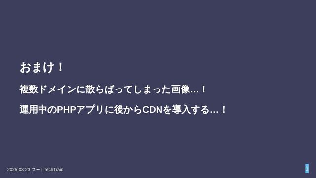 を返した場合、CloudFrontはそのオブジ ェクトをキャッシュしません。一方でオリジンが何のキャッシュ指示も返さない 場合でも、CloudFrontはデフォルトTTL=24時間を適用してコンテンツをキャッ シュします (Manage how long content stays in the cache (expiration) - Amazon CloudFront)(※この挙動は以前のデフォルト設定で、現在はCache Policy未使用 時に適用されます)。したがって明示的な制御をしないと、動的HTMLであって もCloudFront側で丸一日キャッシュされてしまう可能性があります。必要に応じ てビヘイビア設定でMinimum/Default/Maximum TTLをカスタマイズすること で、オリジンヘッダーがない場合のTTLや上限値を変更できます (Manage how long content stays in the cache (expiration) - Amazon CloudFront)。たとえば「最 2025-03-23 スー | TechTrain 34