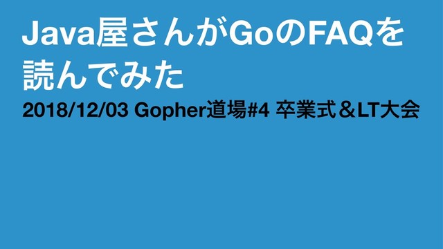 Java͞Μ͕GoͷFAQΛ ಡΜͰΈͨ 2018/12/03 Gopherಓ#4 ଔۀࣜˍLTେձ