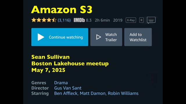 Amazon S3 Sean Sullivan Boston Lakehouse meetup May 7, 2025