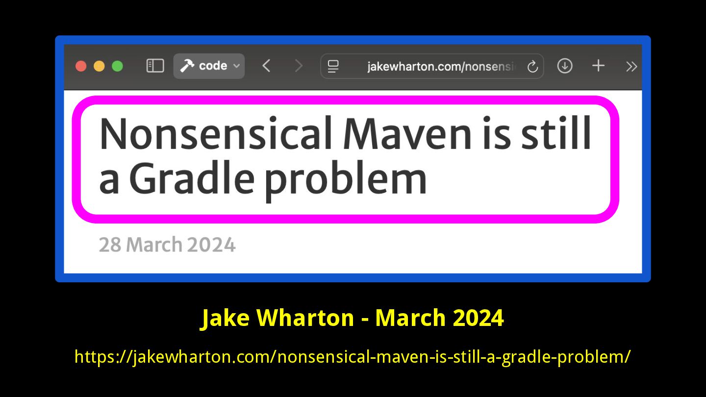 Jake Wharton - March 2024 https://jakewharton.com/nonsensical-maven-is-still-a-gradle-problem/