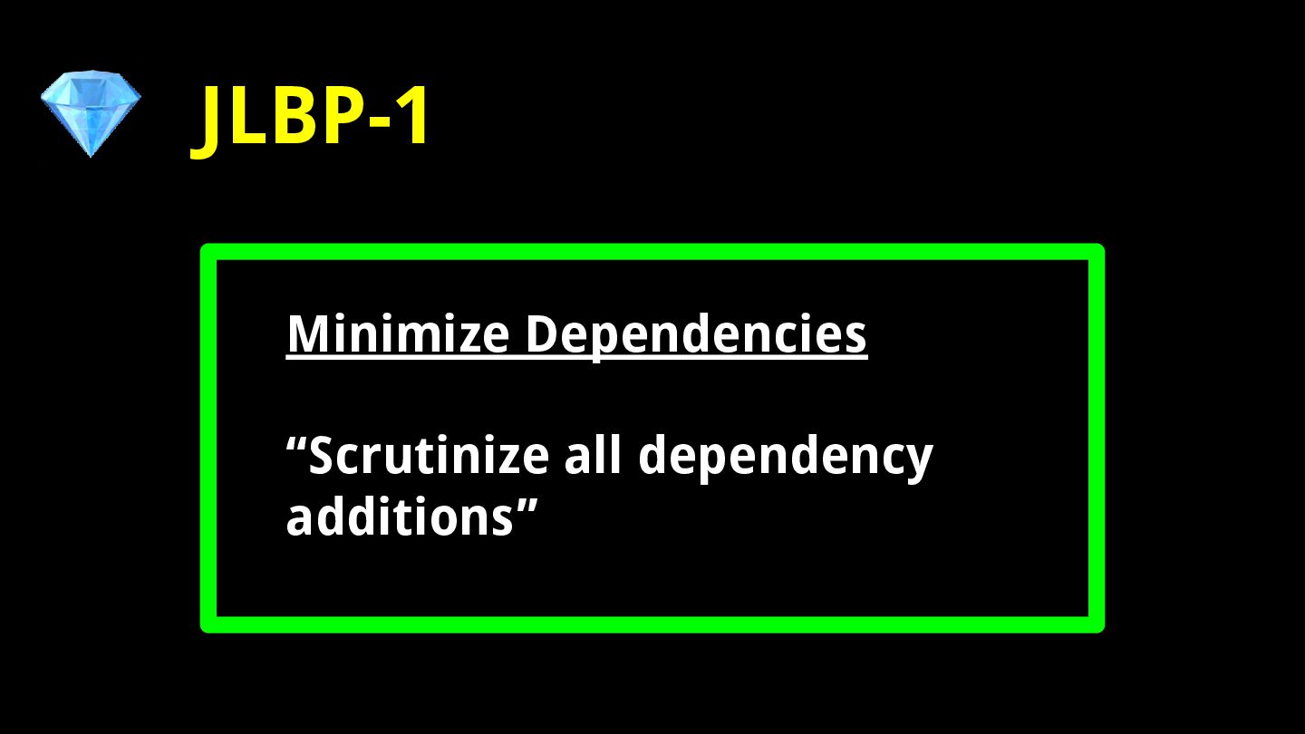 JLBP-1 Minimize Dependencies “Scrutinize all dependency additions”