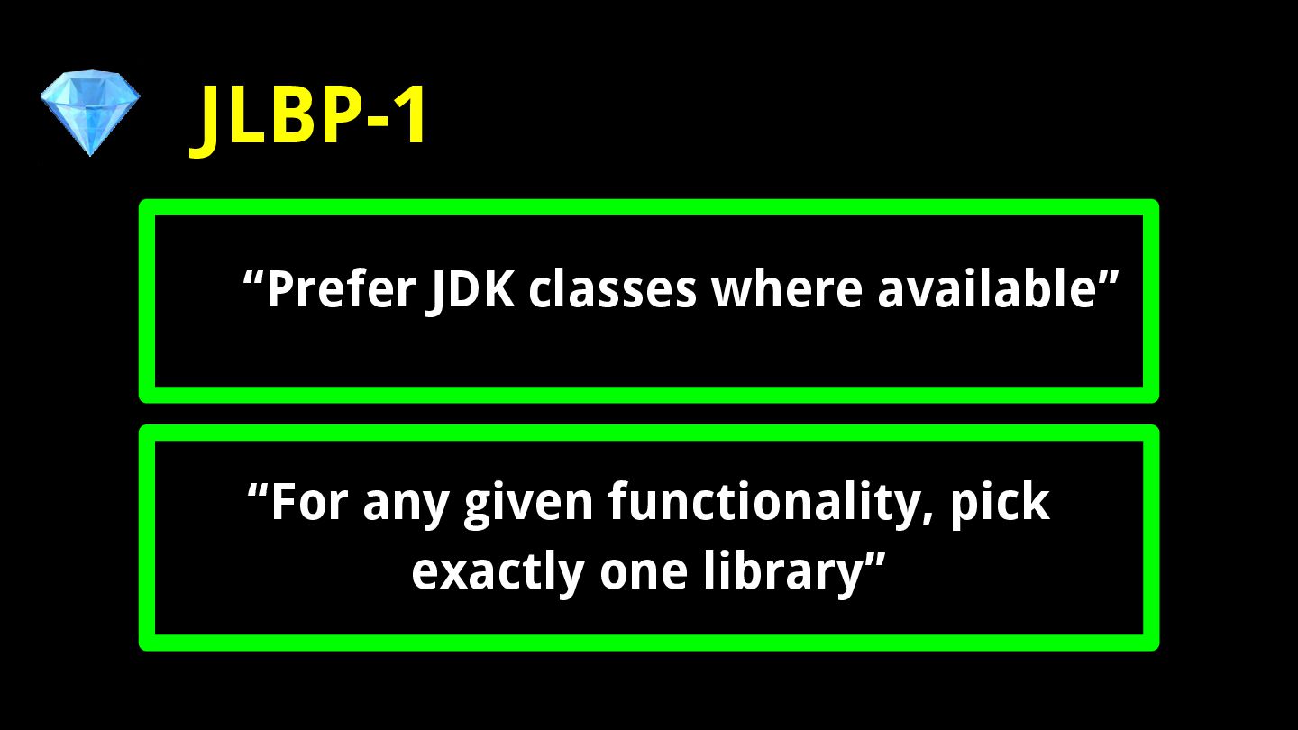 JLBP-1 “Prefer JDK classes where available” “For any given functionality,