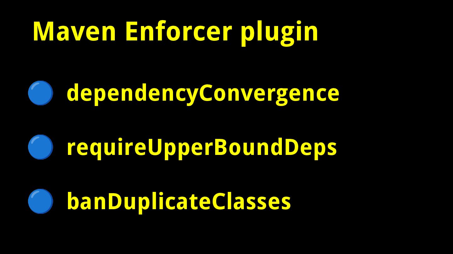 🔵 dependencyConvergence 🔵 requireUpperBoundDeps 🔵 banDuplicateClasses Maven Enforcer plugin