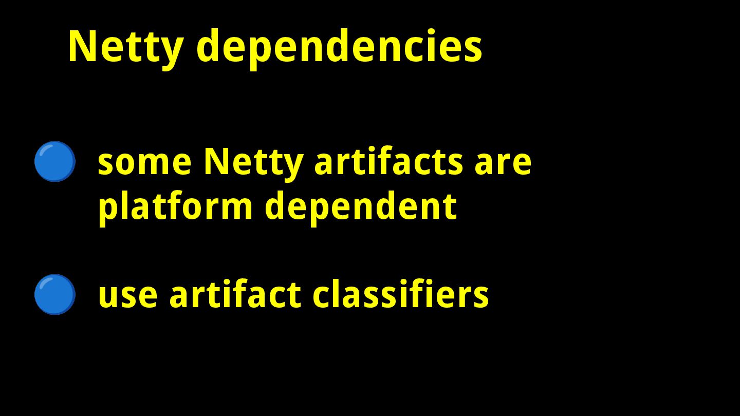 Netty dependencies 🔵 some Netty artifacts are platform dependent 🔵