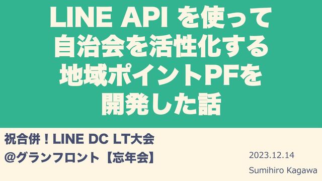 -*/&"1*Λͬͯ ࣏ࣗձΛ׆ੑԽ͢Δ ҬϙΠϯτ1'Λ ։ൃͨ͠ ॕ߹ซʂ-*/&%$-5େձ !άϥϯϑϩϯτʲձʳ 2023.12.14 Sumihiro Kagawa