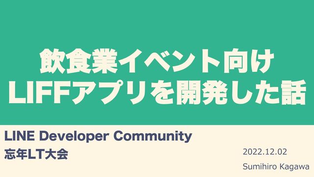ҿ৯ۀΠϕϯτ͚ -*''ΞϓϦΛ։ൃͨ͠ -*/&%FWFMPQFS$PNNVOJUZ -5େձ 2022.12.02 Sumihiro Kagawa