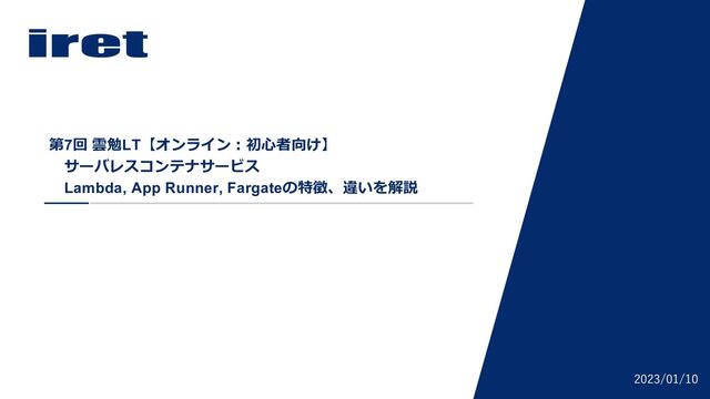 第7回 雲勉LT【オンライン︓初⼼者向け】 サーバレスコンテナサービス Lambda, App Runner, Fargateの特徴、違いを解説 2023/01/10