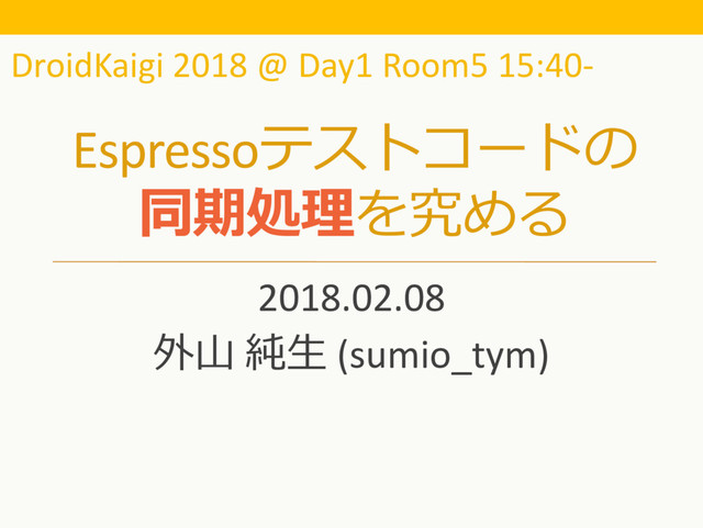 Ja Night Vol.2 h;ps://goo.gl/GBG8r1 p %. Espresso+'*" in DroidKaigi 2017 h;ps://goo.gl/D73jBN p % UI Automator# in DroidKaigi 2016 h;ps://goo.gl/NQV8GP 73