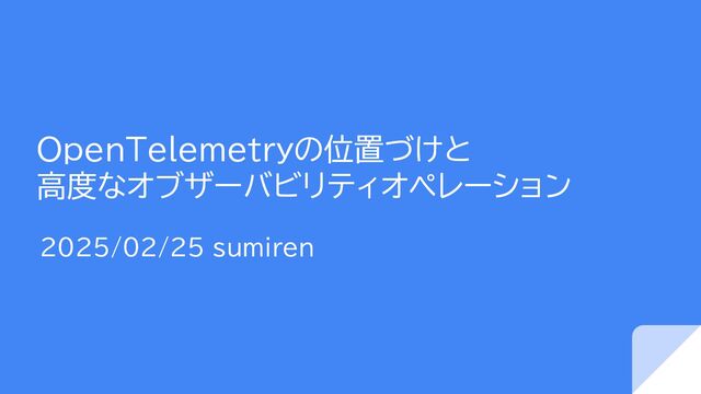 OpenTelemetryの位置づけと 高度なオブザーバビリティオペレーション 2025/02/25 sumiren