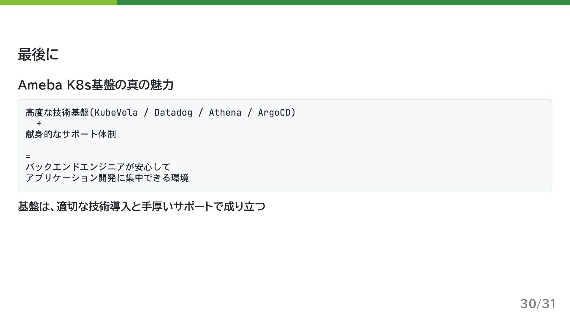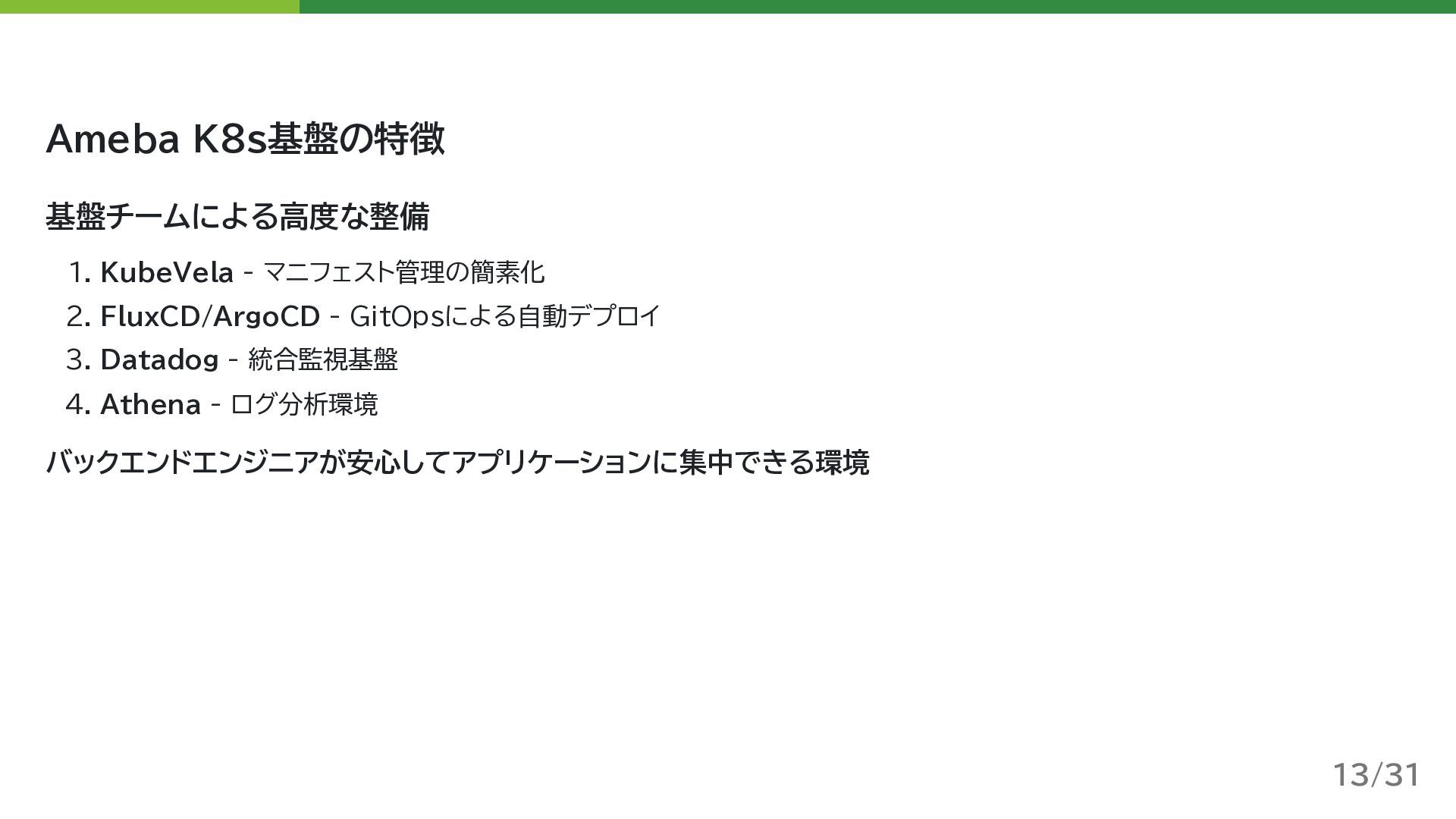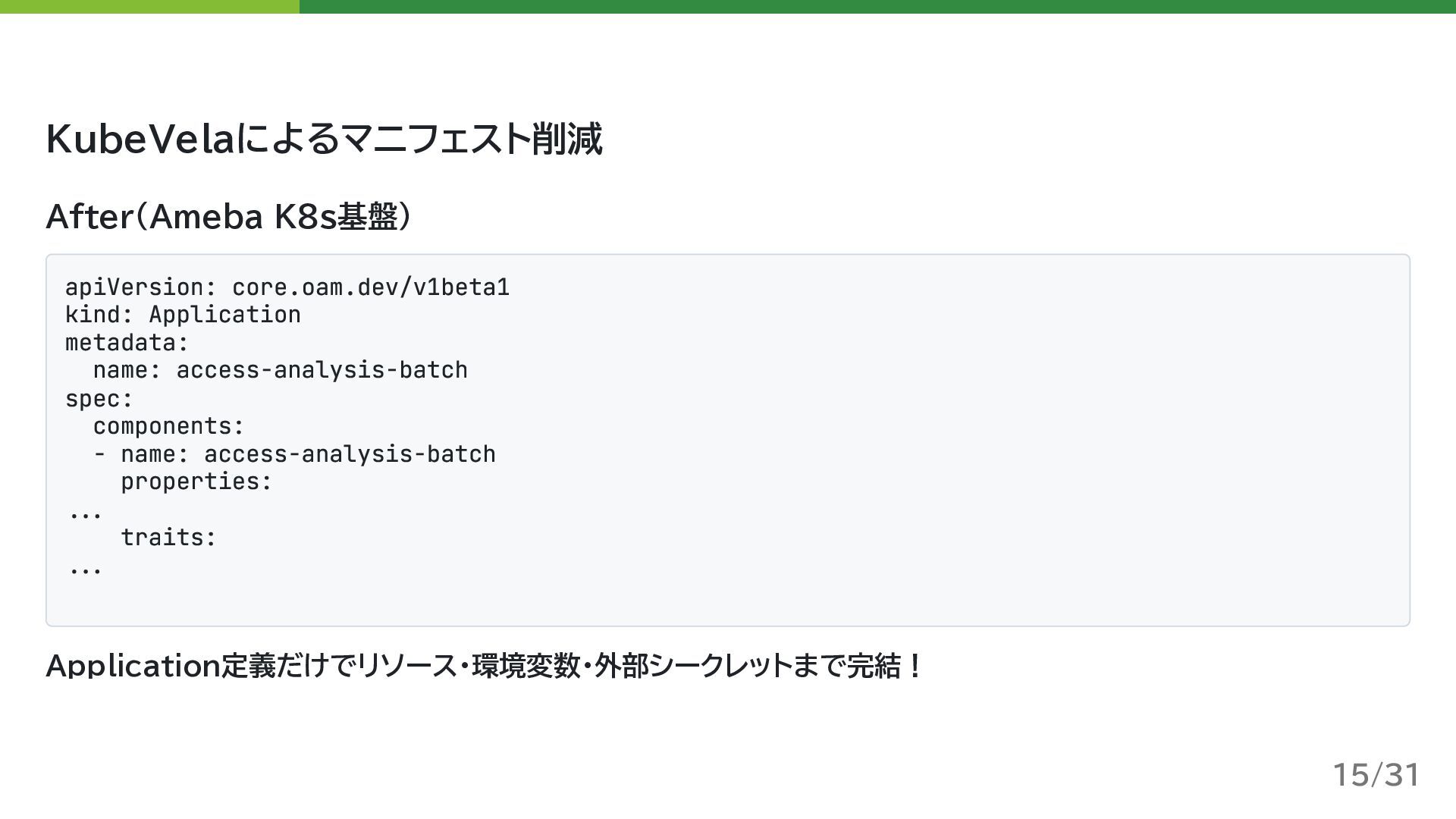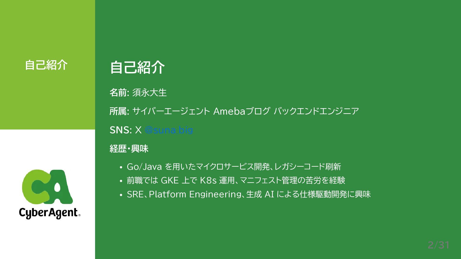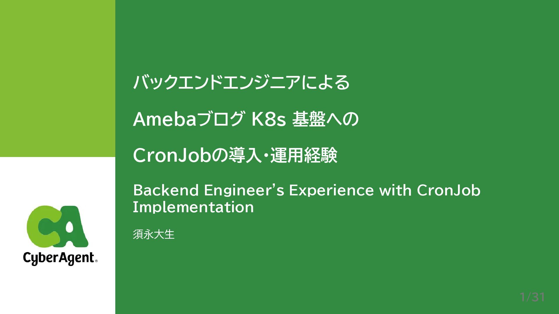 K8sの運用でマニフェスト管理に苦労した経験を持つエンジニアが、Amebaブログで利用する重要システムをK8s基盤へCronJobで導入・運用した体験を解説します。 具体的にはKubeVelaによりマニフェストの実装量が劇的に削減され、FluxCD/ArgoCDによるGitOpsベースの自動デプロイによってどのように開発・運用ストレスが減ったかをお伝えします。 さらに、実際にCronJobの障害に直面した際の対応を共有します。DatadogやAthenaといった高度なオブザーバビリティ環境と基盤チームによるサポートがいかに原因特定と解決を可能にしたかをお伝えします。K8sの導入・運用に課題を持つインフラ/SREエンジニアの方々に、利用者側の生の声と実践知をお届けします。
