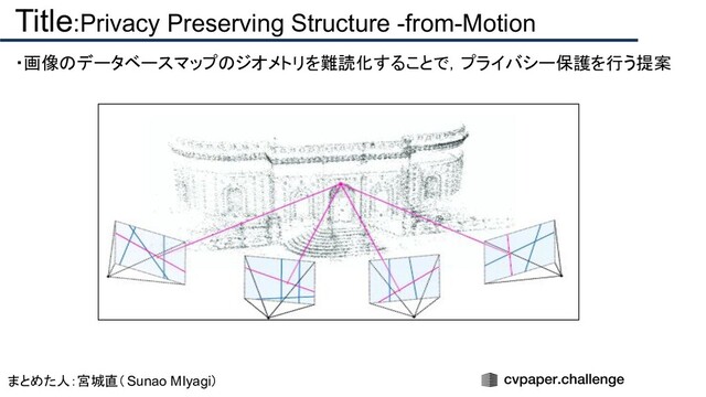 論文Title:Privacy Preserving Structure -from-Motionの自分なりのまとめです。