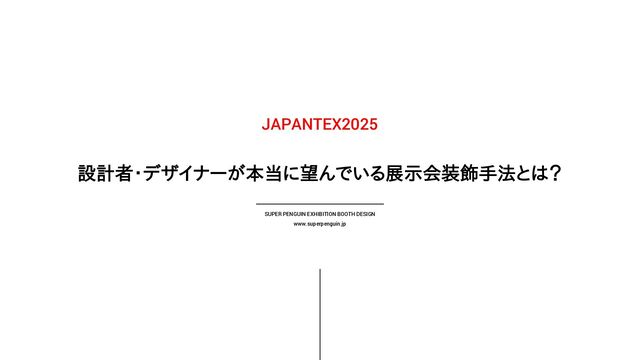 SUPERPENGUIN INC. ALL RIGHT RESERVED. 56 脱「展示会らしい展示会場」にする。他の展示会は既にその方向で進んでいる。 展示会としてのビジュアル面が大事(アートディレクターの起用が望ましい) シンプルでいいので「木工」によるブースが大半を占めるように 「秀逸な会場デザイン」 将来的な話ですが、会場内や展示会ビジュアルなど、デザインが秀逸であれば、それだけで、デザイナーは 「行かなければ」と考え、会場に足を運ぶようになります。 04 将来的な話 行ってみたくなる展示とは?