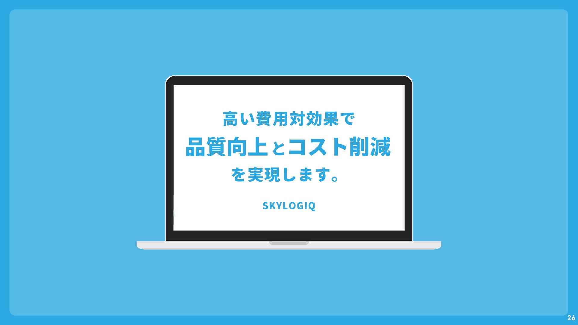 高い費用対効果で SKYLOGIQ を実現します。 品質向上とコスト削減 26