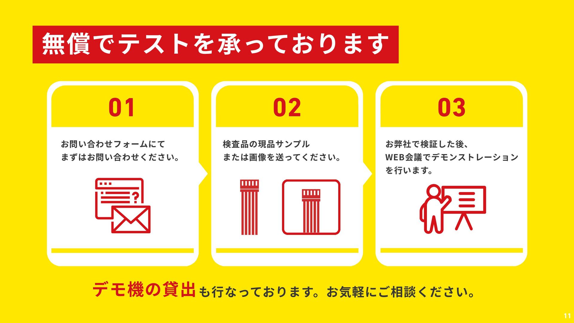 11 無償でテストを承っております も行なっております。お気軽にご相談ください。 デモ機の貸出