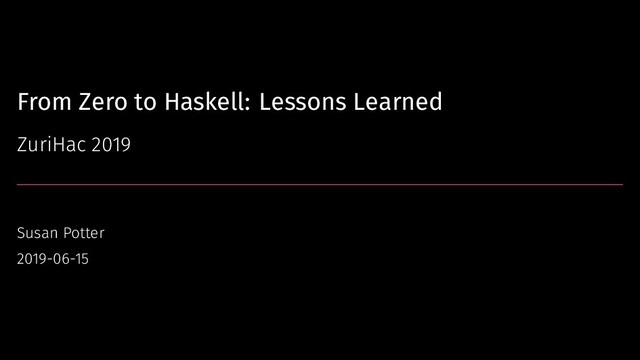 ingest structure. We us CEE-enhanced syslog @cee: {"time":"20190613T041811654", "tid":167, "pid":33451, "ver":"f73cfffe", "svc":"dk", "cmp":"tel", "env":"s1", "p":{"username":"someuser", "action":"password-reset"}} → → Now we can query structured logs not search for arbitrary text @severity:"error" svc:"dk" env:"prod" payload_status:[500 TO 599] → Susan Potter From Zero to Haskell: Lessons Learned 2019-06-15 32 / 44