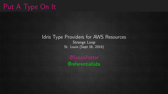 rules/policies Rules defined in terms of operating environment state; remove hard coding, improve maintainability and trustworthiness/business value of rules codebase. 2 Validate existing deployments validate infrastructure deployed meets cost, availability, capability, security policies 3 Validate deployments against policies pre-deployment prevent deploying cloud resources that violate security, cost, availability, capabiity policies and don’t pay AWS a dime for "bad" infrastructure 4 Manage infrastructure requirements Managing infrastructure/deployment requirements by encoding them as propositions translated to types and proved with definitions that typecheck