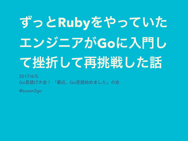 ͣͬͱRubyΛ͍ͬͯͨ ΤϯδχΞ͕Goʹೖ͠ ͯ࠳ંͯ͠࠶ઓͨ͠ 2017/6/5 GoݴޠLTେձʂ ʮ࠷ۙɺGoݴޠ࢝Ί·ͨ͠ʯͷձ @suzan2go
