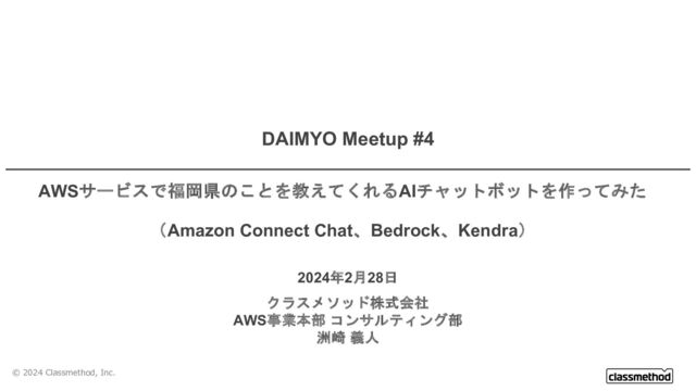 認定 • クラウド(AWS等)の技術コンサルティング、開発、運⽤ • データ分析基盤の技術コンサルティング、開発、運⽤ • アプリケーション(LINE、iOS等)の企画開発、運⽤ • SaaS、Webサービスの企画開発、導⼊⽀援、運⽤ • 企業向けIT⼈材育成、内製化⽀援 • 無⼈店舗技術・キャッシュレス決済システムの企画開発、運営 プリズマティクス株式会社 ネクストモード株式会社 アノテーション株式会社 アンダースコア株式会社 プロパゲート株式会社 Classmethod (Europe) GmbH Classmethod Canada Inc. Classmethod India Private Limited Classmethod (Thailand) Co., Ltd. Classmethod Korea Co., Ltd. Classmethod Vietnam Co., Ltd. Φʔϓϯͳൃͱߴ͍ٕज़ྗʹΑΓͯ͢ͷਓʑͷ׆ಈʹߩݙ͠ଓ͚Δ 名称 代表者 設 ⽴ 本 社 拠 点 資本⾦ 従業員 クラスメソッド株式会社 (英語表記︓Classmethod, Inc.) 横⽥ 聡 2004年7⽉7⽇ 東京都港区⻄新橋1-1-1 ⽇⽐⾕フォートタワー26階 東京、札幌、⼤阪、名古屋、岡⼭、福岡、上 越、沖縄、ベルリン、バンクーバー、ニュー デリー、バンコク、ソウル 1億円 720名(2023年7⽉現在/グループ全体) 3