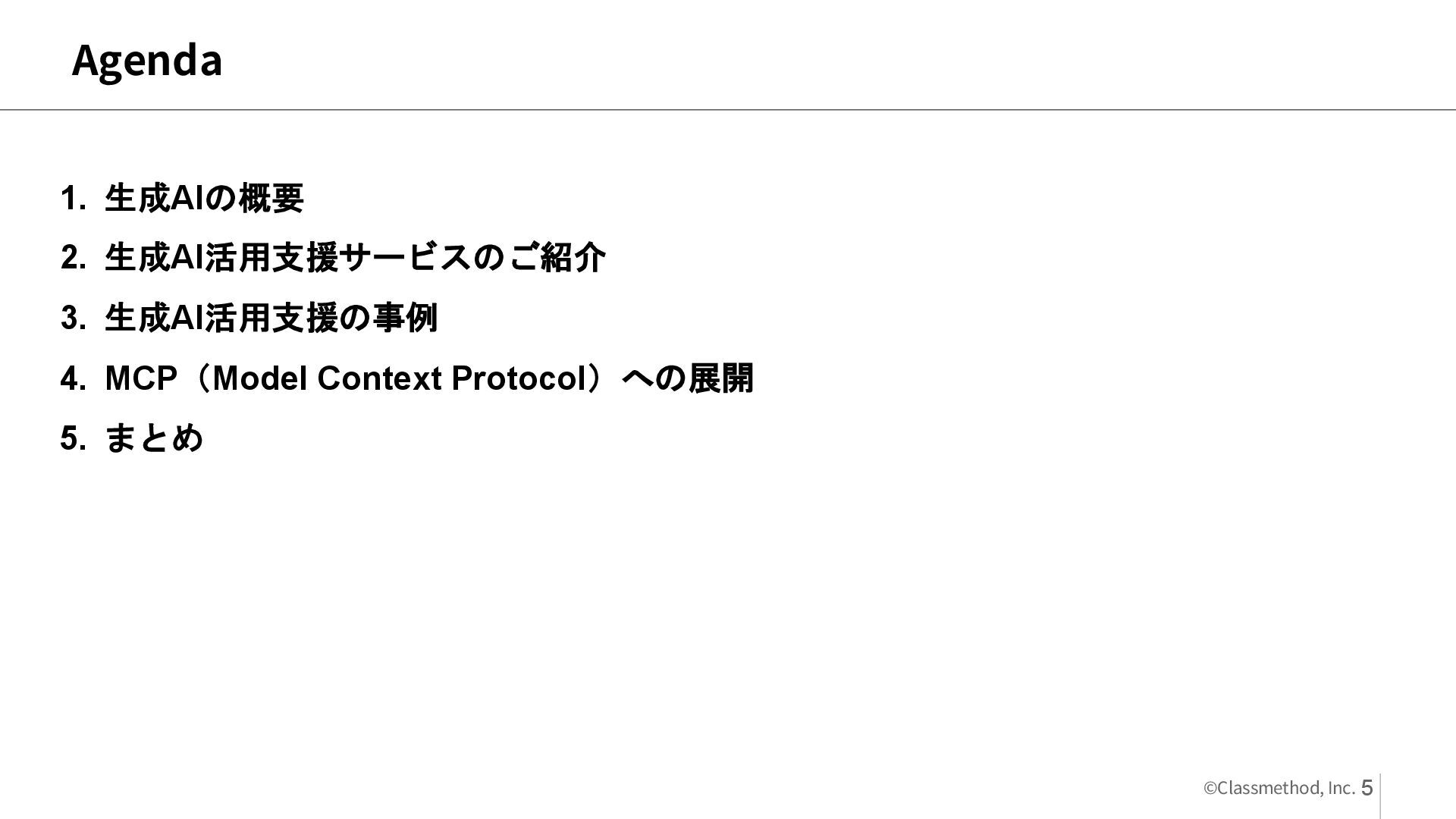 5. ©Classmethod, Inc. 私(洲崎)の生成AI 活用例 1.文書作成支援 ・メールの添削 ・議事録の要約 ・社内相談用の要点の整理 2.アイデア出し支援 ・アイデアの生成