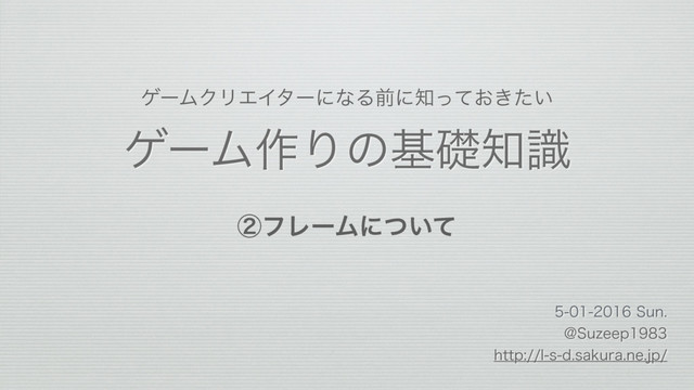ήʔϜ࡞Γͷجૅࣝ 4VO !4V[FFQ IUUQMTETBLVSBOFKQ ήʔϜΫϦΤΠλʔʹͳΔલʹ͓͖͍ͬͯͨ ᶄϑϨʔϜʹ͍ͭͯ