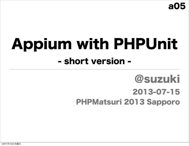 https://raw.github.com/appium/appium/master/ sample-code/examples/php/composer.json w 5IJTJTTBNQMFpMFNBEFCZ"QQJVNQSPKFDU w*OTUBMMVTJOH$PNQPTFS • $ ./composer.phar install 137݄15݄༵