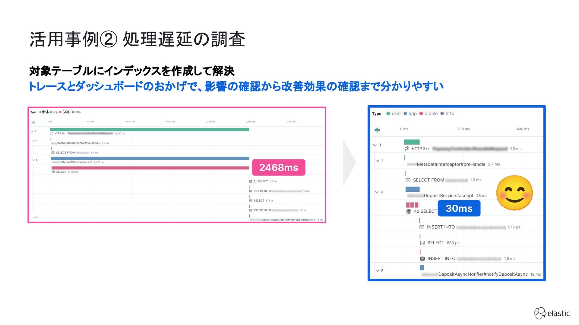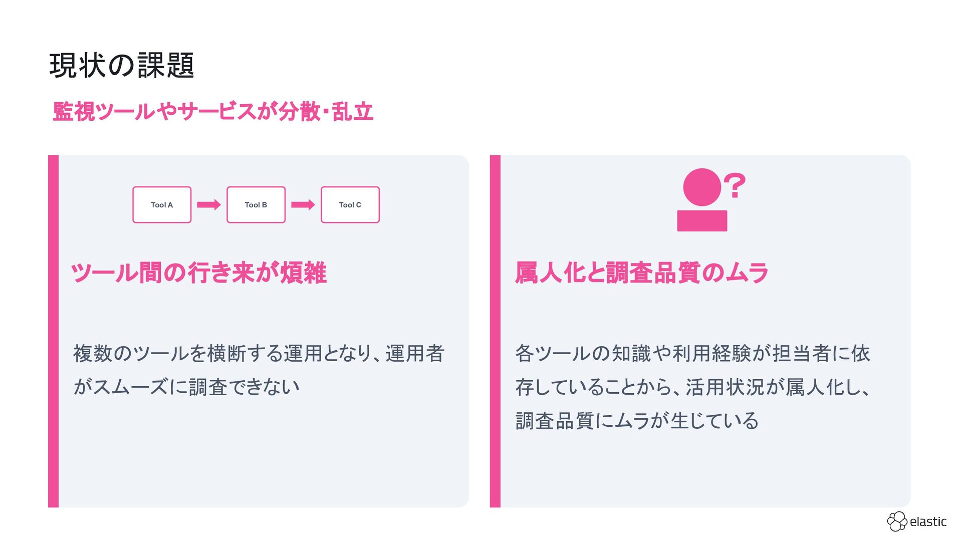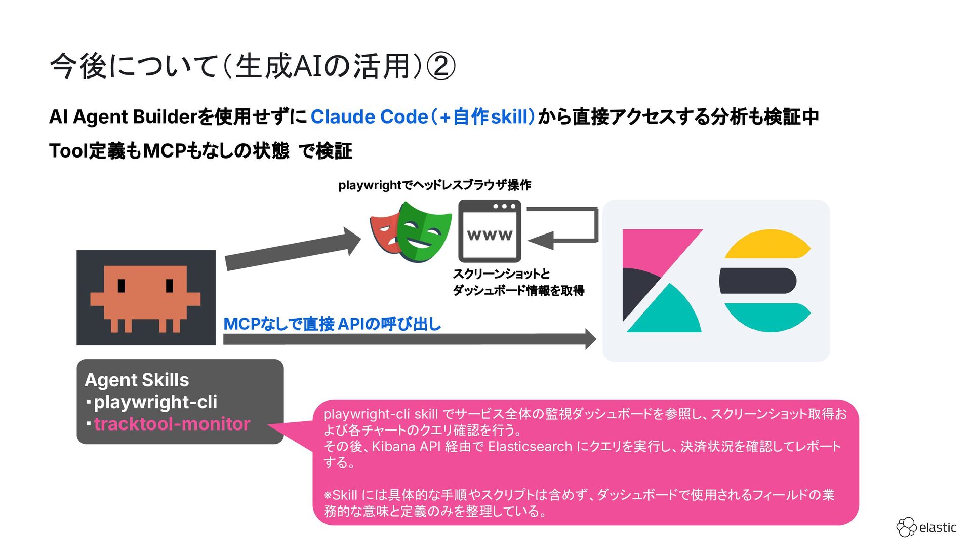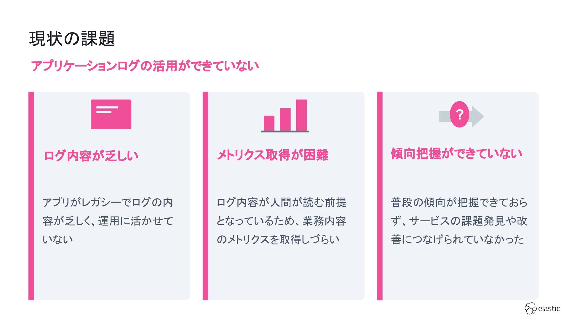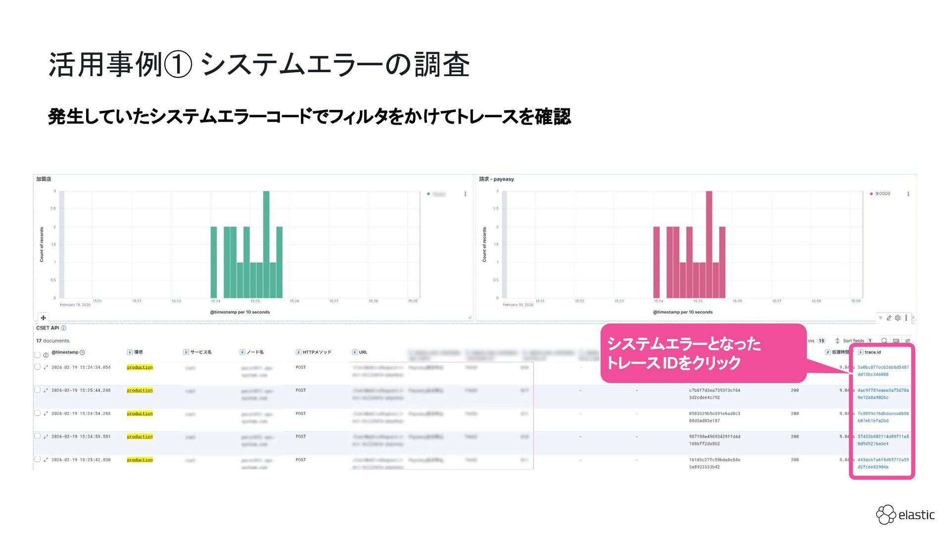 SBペイメントサービスでは、増大するログ量や運用負荷といった課題を背景に、決済サービスを支えるログ基盤をElastic Cloudへ段階的に移行しています。本セッション前半では、移行に至った背景や進め方、移行プロジェクトで直面した課題とそれに対する工夫についてご紹介します。後半では、実際に決済サービスの監視で活用しているダッシュボードを例に、Elastic AgentやAPMを用いたオブザーバビリティの実践的な取り組みをお伝えします。