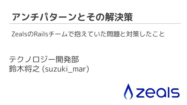ZealsのRailsチームで抱えていた問題と対策したこと アンチパターンとその解決策 テクノロジー開発部 鈴木将之 (suzuki_mar)