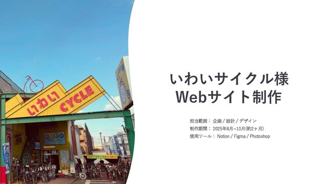 いわいサイクル様 Webサイト制作 担当範囲: 企画 / 設計 / デザイン 制作期間: 2025年8月~10月(約2ヶ月)
