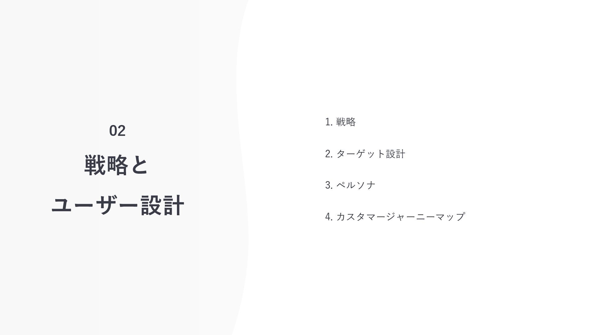 02 戦略と ユーザー設計 1. 戦略 2. ターゲット設計 3. ペルソナ 4.