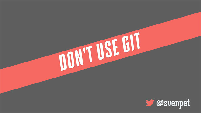 In this ironic lightning talk I will give you 5 reasons, why you shouldn't use Git always with a twinkle in the eye. So create a new branch in SVN and come to my session while you checkout the branch.