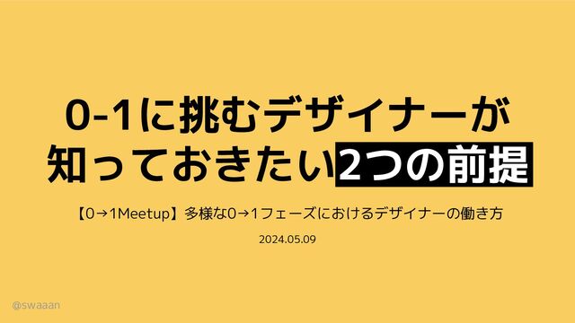 2024年5月9日に開催された「0→1Meetup 〜多様な0→1フェーズにおけるデザイナーの働き方〜」にて登壇した発表資料です。