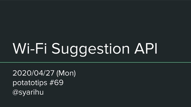 Wi-Fi Suggestion API 2020/04/27 (Mon) potatotips #69 @syarihu