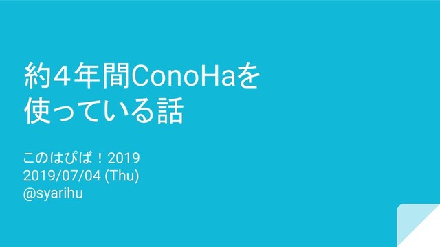 約4年間ConoHaを 使っている話 このはぴば!2019 2019/07/04 (Thu) @syarihu