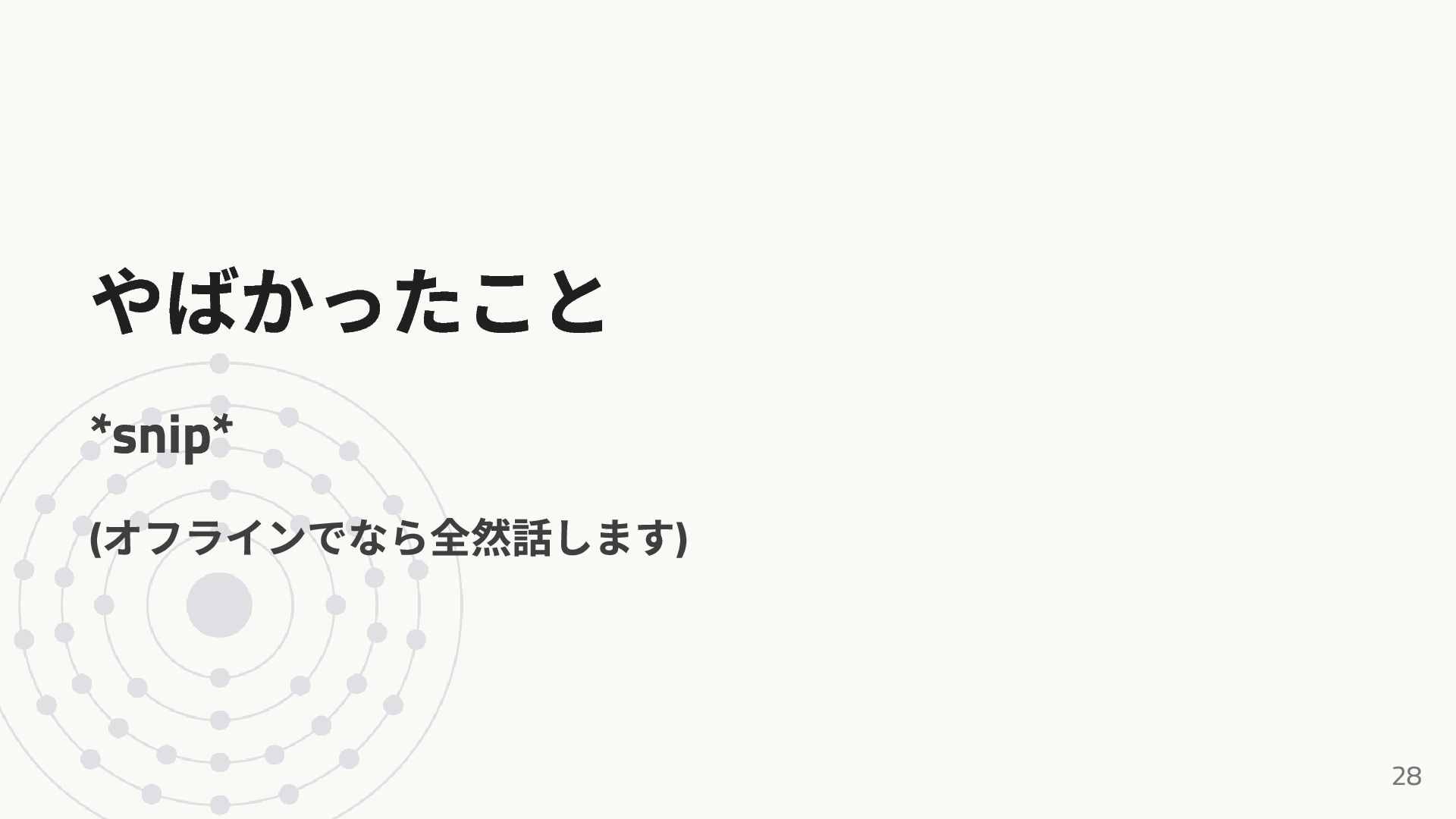やばかったこと *snip* (オフラインでなら全然話します) 28