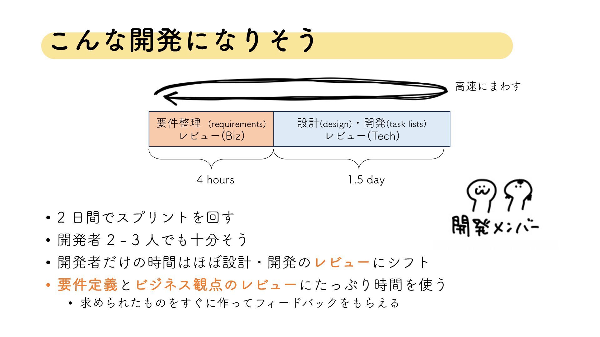 ͜Μͳ։ൃʹͳΓͦ͏ • ؒͰεϓϦϯτΛճ͢ • ։ൃऀ ਓͰेͦ͏ • ։ൃऀ͚ͩͷ࣌ؒ΄΅ઃܭɾ։ൃͷϨϏϡʔʹγϑτ •