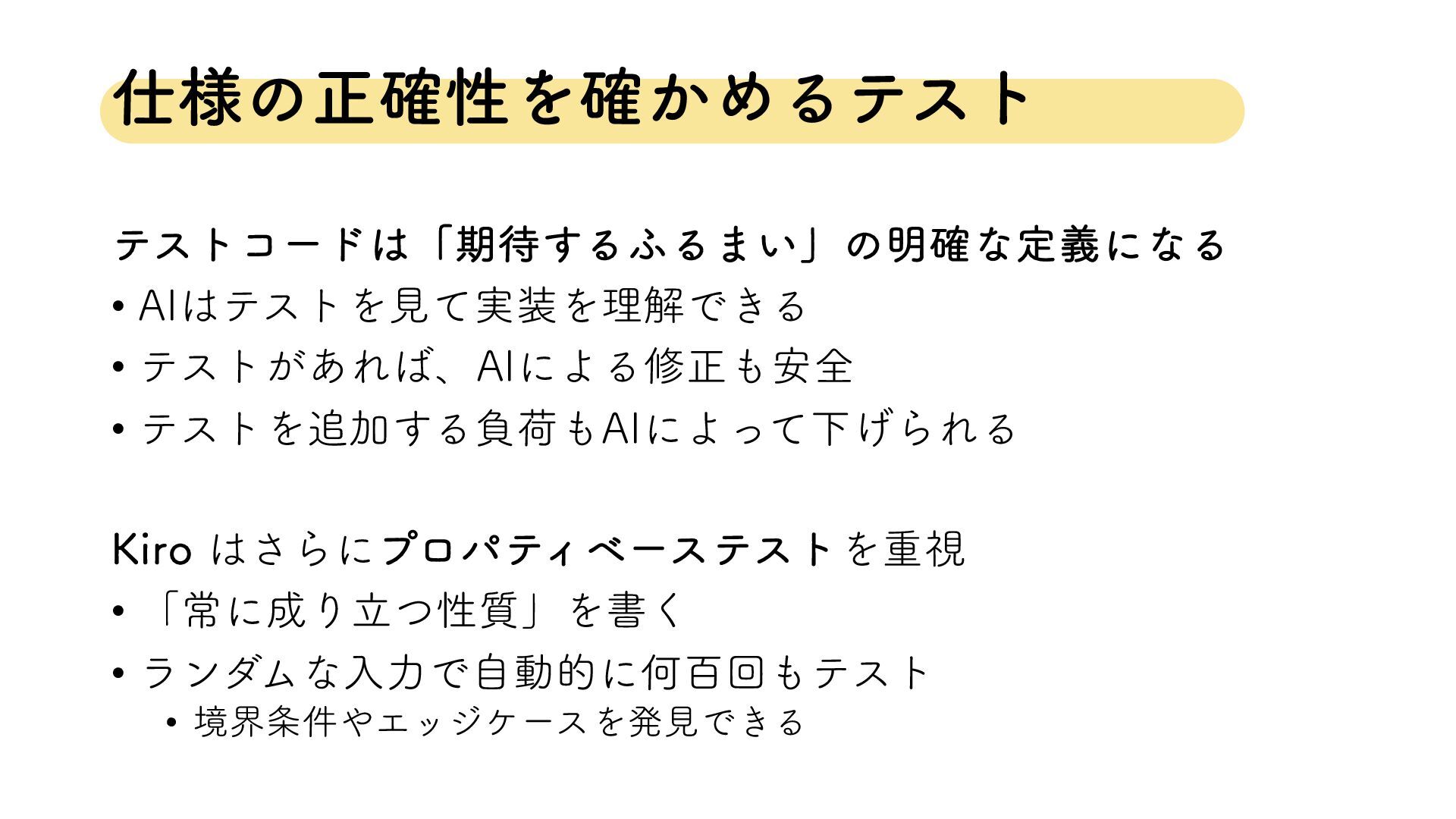 • ʮৗʹΓཱͭੑ࣭ʯΛॻ͘ • ϥϯμϜͳೖྗͰࣗಈతʹԿඦճςετ • ڥք݅ΤοδέʔεΛൃݟͰ͖Δ