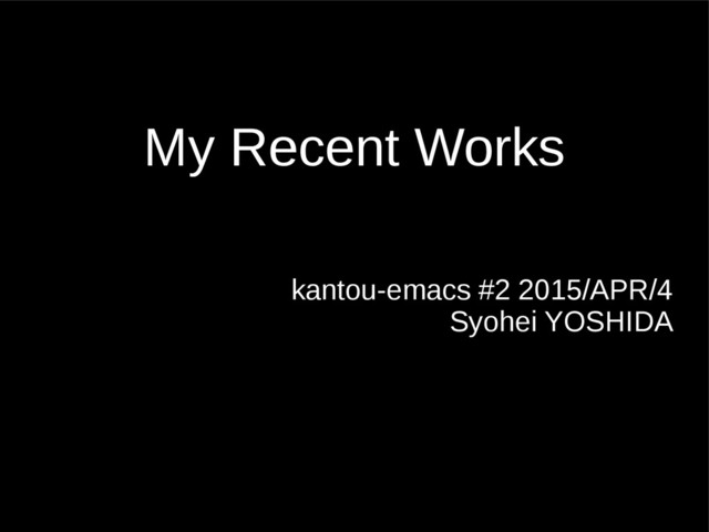 My Recent Works kantou-emacs #2 2015/APR/4 Syohei YOSHIDA