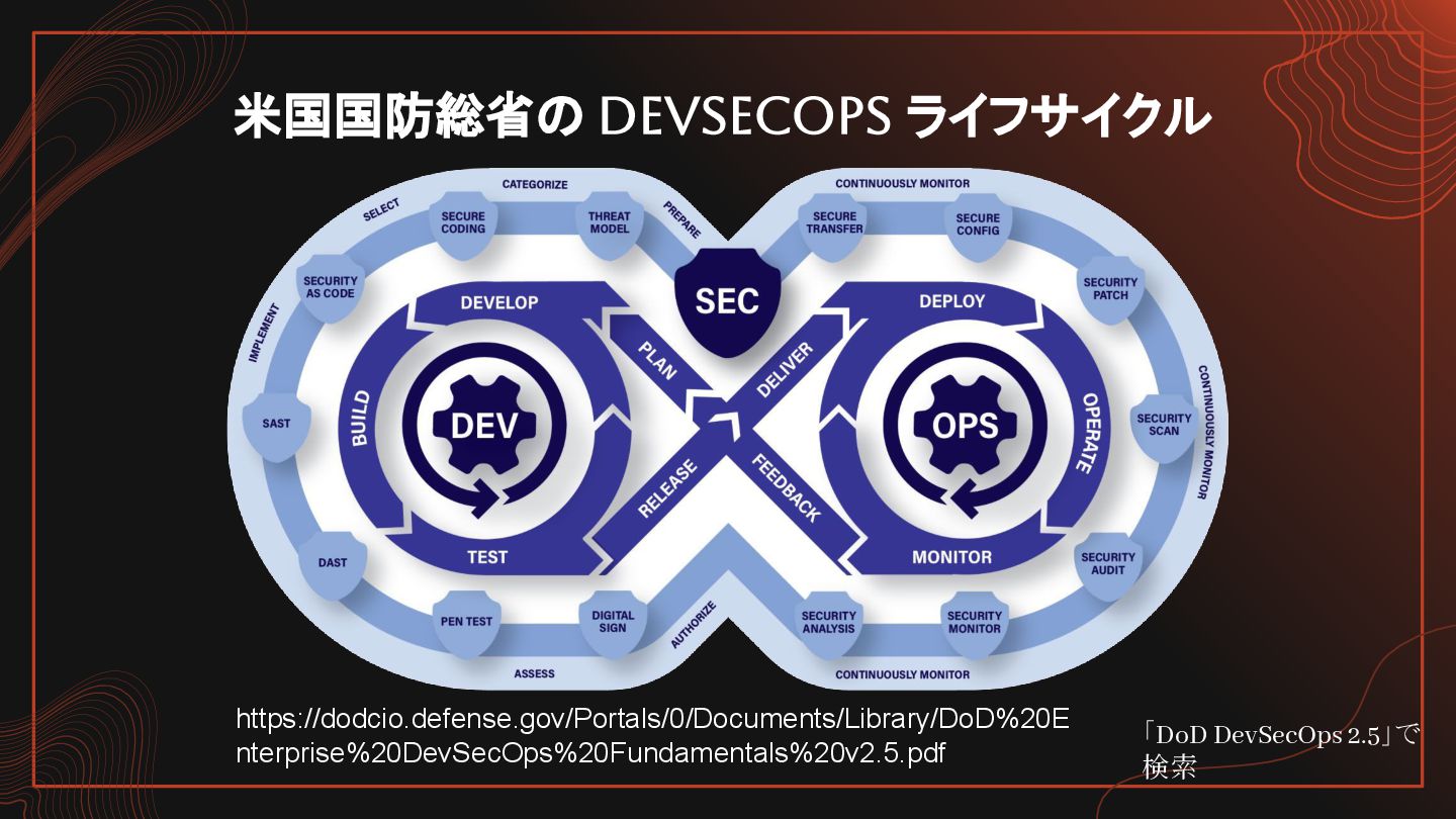 米国国防総省の DEVSECOPS ライフサイクル https://dodcio.defense.gov/Portals/0/Documents/Library/DoD%20E nterprise%20DevSecOps%20Fundamentals%20v2.5.pdf 「DoD DevSecOps 2.5」で 検索