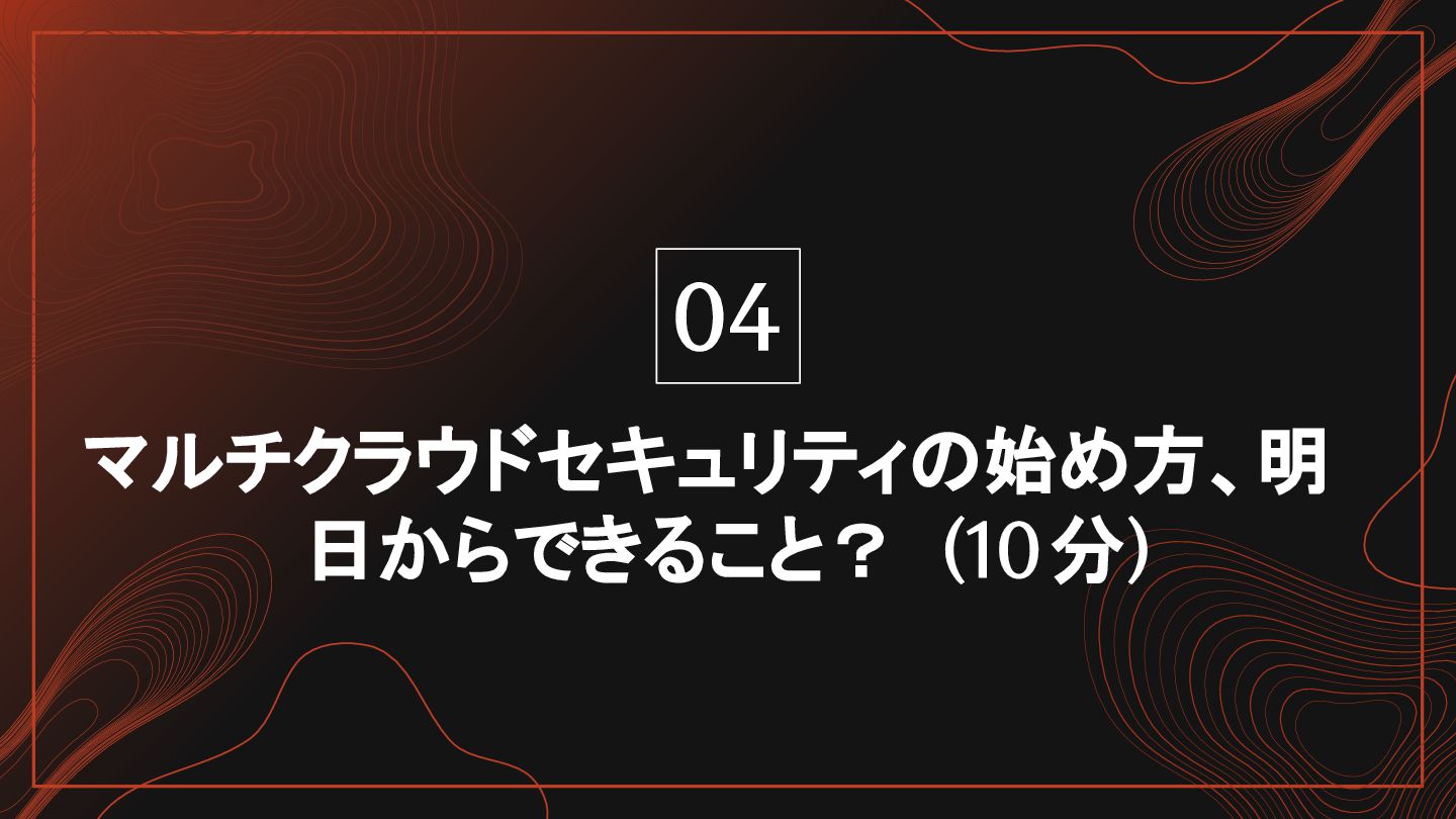 マルチクラウドセキュリティの始め方、明 日からできること? (10分) 04