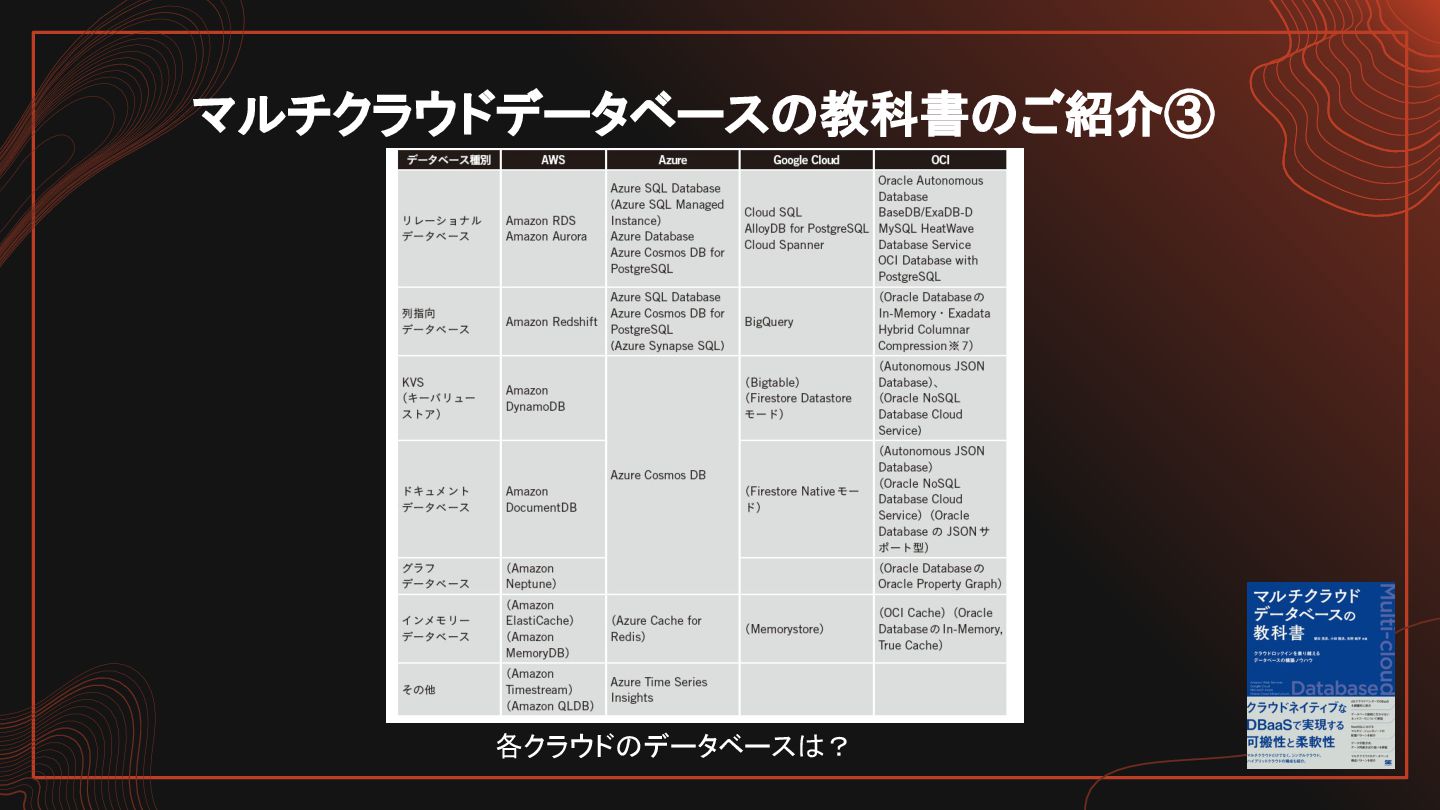 マルチクラウドデータベースの教科書のご紹介③ 各クラウドのデータベースは?