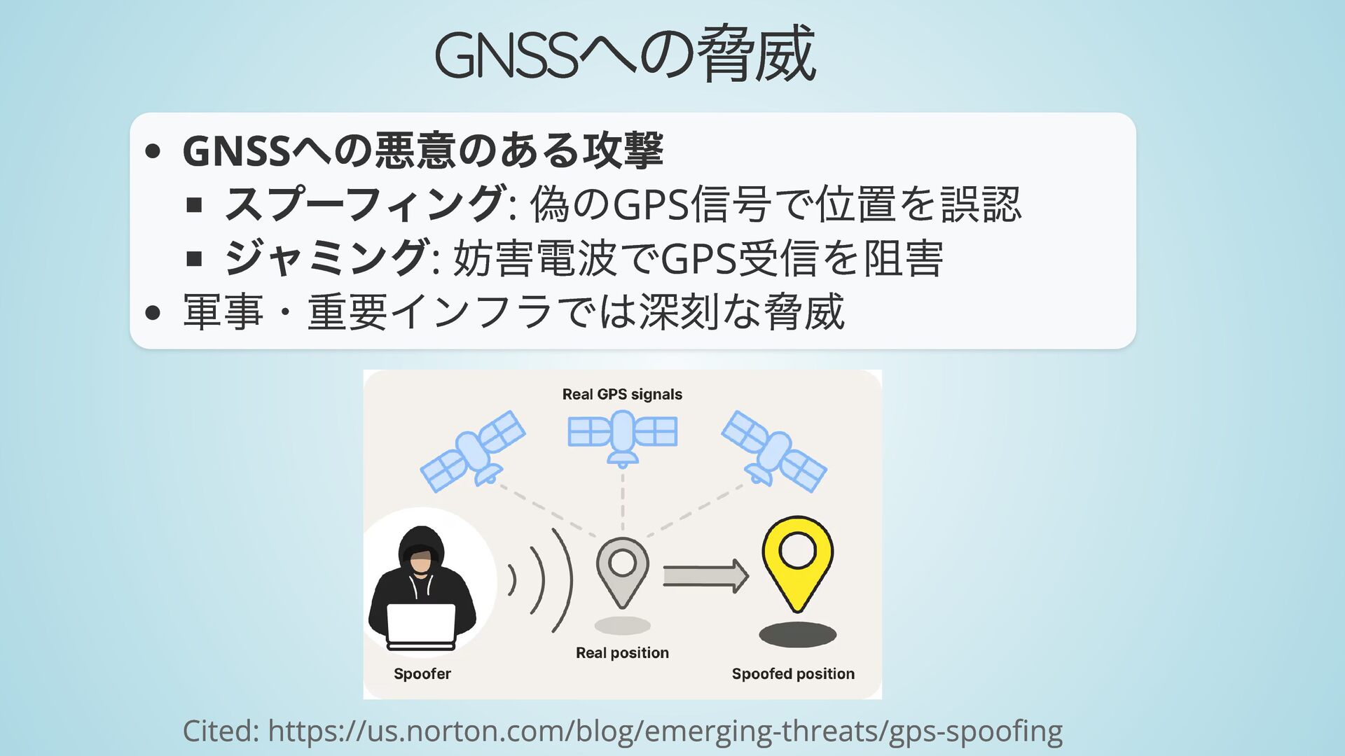 軍事・重要インフラでは深刻な脅威 Cited: https://us.norton.com/blog/emerging-threats/gps-spoofing