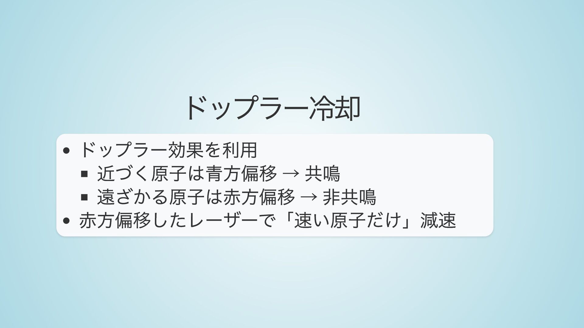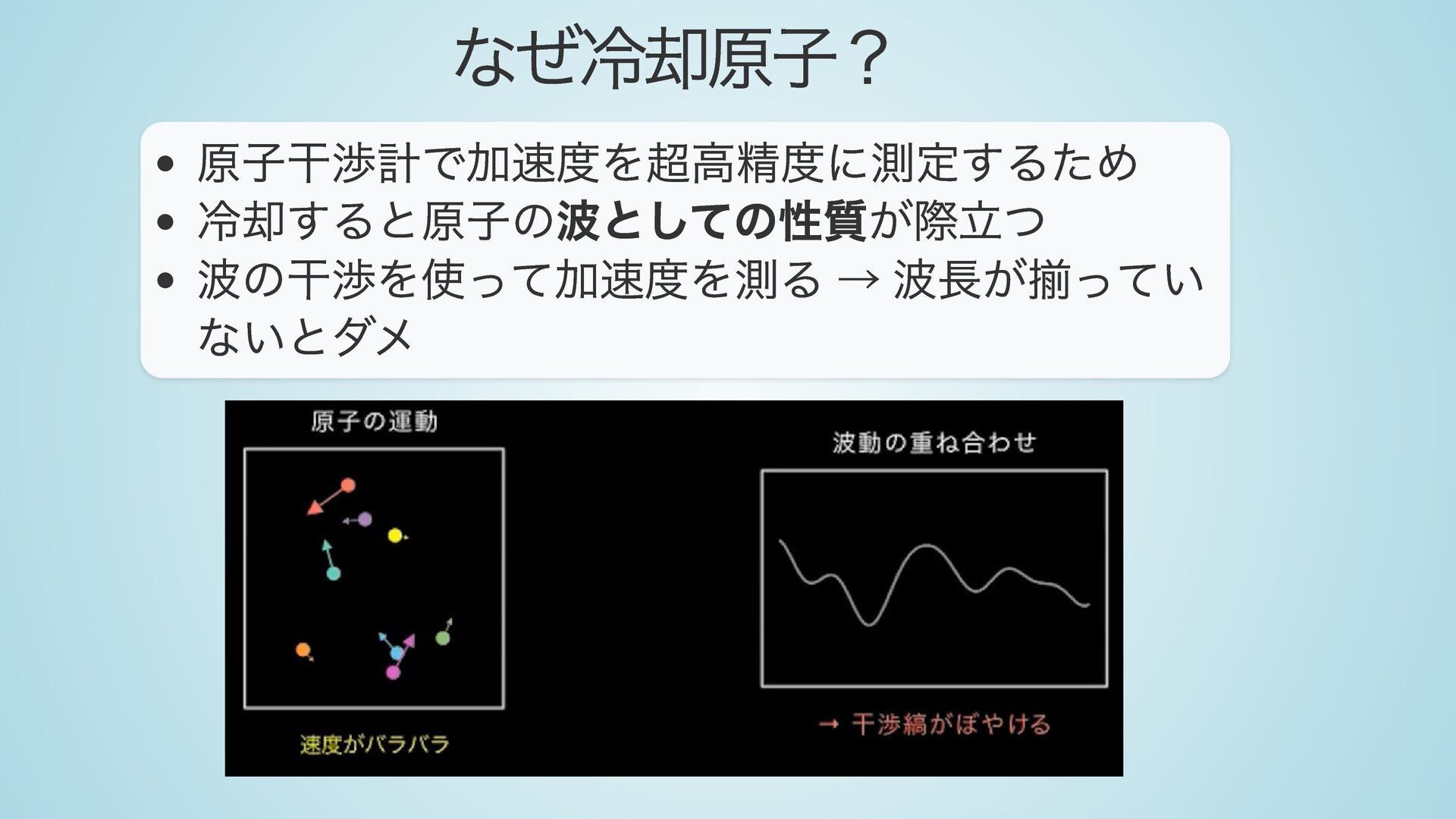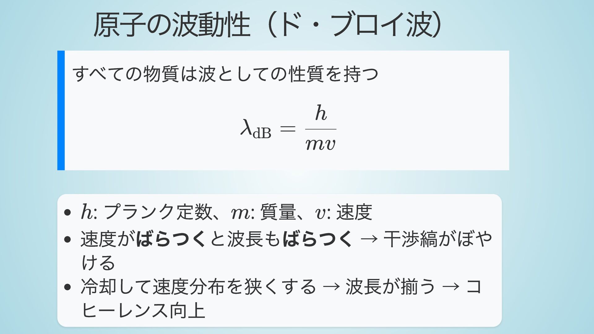 ・ 冷却原子の波動性(ド・ブロイ波長、レーザー冷却、コヒーレンス)